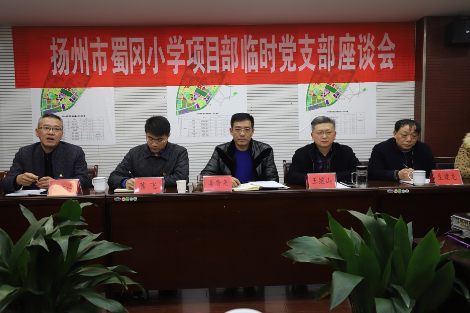 12月26日下午,揚州市蜀岡小學(xué)項目部臨時(shí)黨支部座談會(huì )在維揚發(fā)投會(huì )議室召開(kāi),維揚發(fā)投黨支部副書(shū)記、副總經(jīng)理姜晉堯,區黨建指導員王繼山,黨群部主任許洪,工程部主任薛金山,資產(chǎn)管理部副主任生建龍及邗建公司代表,蜀岡小學(xué)項目部全體黨員及管理人員出席了本次會(huì )議。 會(huì )上,區黨建指導員王繼山同志宣讀了西區新城黨工委《關(guān)于同意成立揚州市蜀岡小學(xué)項目部臨時(shí)黨支部的批復》。經(jīng)西區新城黨工委研究,同意成立揚州市蜀岡小學(xué)項目部臨時(shí)黨支部,并由姜晉堯同志擔任黨支部書(shū)記,蔣成祥和劉長(cháng)俊同志擔任黨支部委員。 隨后,姜晉堯同志就項目部臨時(shí)黨支部黨建工作的開(kāi)展談了幾點(diǎn)看法:一是堅決圍繞項目部中心任務(wù)開(kāi)展黨建工作;二是不斷加強黨組織規范化建設;三是進(jìn)一步發(fā)揮黨支部對項目建設的促進(jìn)作用。 最后,與會(huì )人員就蜀岡小學(xué)項目部的工程進(jìn)度、安全生產(chǎn)、揚塵管控、節假日管理以及農民工工資按時(shí)足額發(fā)放等事宜進(jìn)行深入交流,大家一致認為要積極貫徹落實(shí)本次座談會(huì )精神,扎實(shí)做好項目部各項工作,努力把蜀岡小學(xué)項目部打造成精品項目。